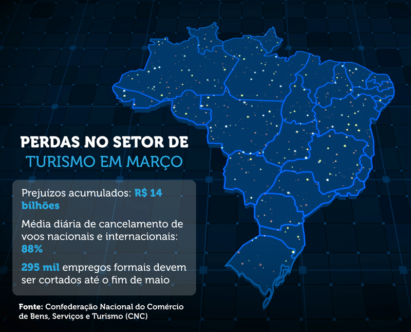 Para se ter uma ideia, apenas na segunda quinzena de março, a perda na área de Turismo foi de aproximadamente R$ 12 bilhões. O período coincide com medidas de isolamento tomadas por diversos governadores e prefeitos.