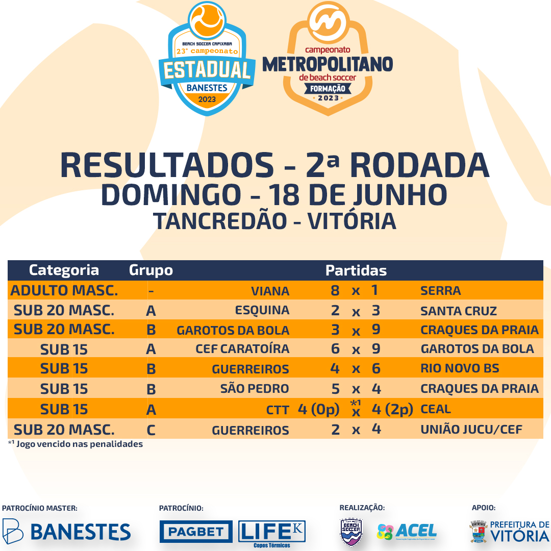 Na segunda posição, São Pedro BS venceu o Craques da Praia por 5 a 4, mas foi derrotado, na prorrogação, pelo Guerreiros. Na sequência, Guerreiros está na terceira posição, com dois pontos (vitória no tempo extra) e Craques da Praia fecha o grupo na quarta colocação com um ponto (vitória nos pênaltis).