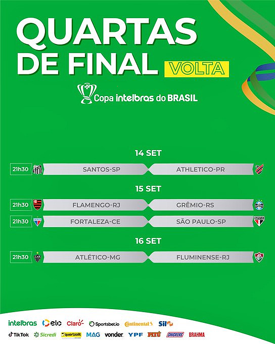 O primeiro confronto, que terá como palco o estádio da Vila Belmiro, será entre Santos e Athletico-PR, a partir das 21h30 (horário de Brasília) do dia 14. No dia 15 acontecem outros dois duelos: Flamengo e Grêmio, a partir das 21h30 no Maracanã, e Fortaleza e São Paulo, no mesmo horário no Castelão.