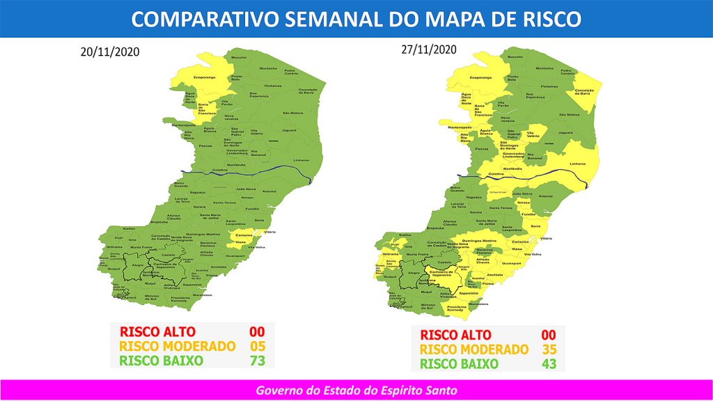 O Mapa de Risco segue as orientações dos boletins epidemiológicos do Ministério da Saúde e recomendações da equipe de especialistas do Centro de Comando e Controle (CCC) Covid-19 no Espírito Santo, que é composto pelo Corpo de Bombeiros Militar, Defesa Civil, Secretaria da Saúde (Sesa), Instituto Jones dos Santos Neves (IJSN), da Universidade Federal do Espírito Santo (Ufes) e do Instituto Federal do Espírito Santo (Ifes). As decisões adotadas pelo Governo do Estado seguem parâmetros técnicos.