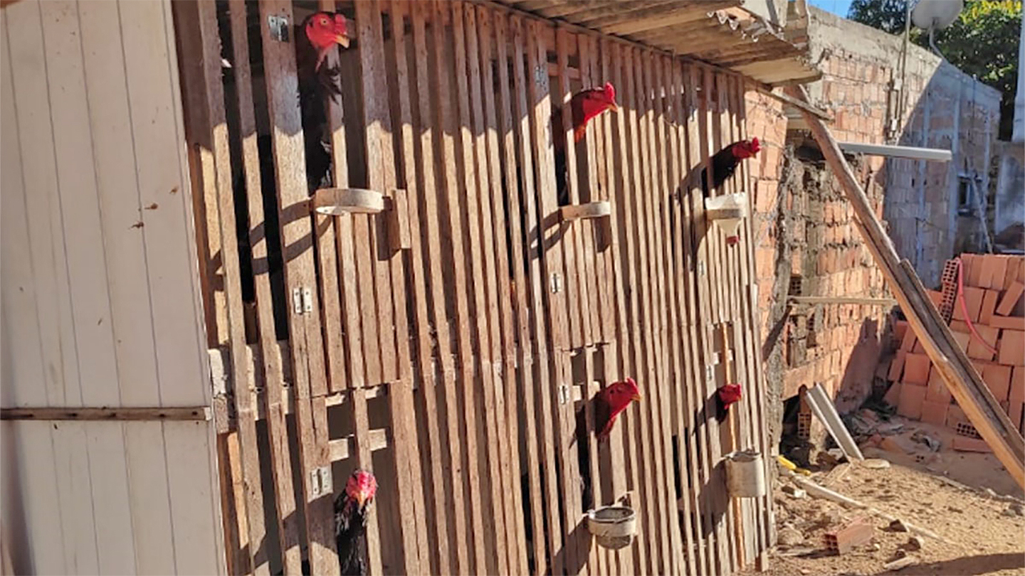 Além da constatação de sinais de descuido com o cão, foram encontrados indícios de maus-tratos contra outros animais e suspeita de que galos apreendidos no local seriam usados em rinhas. Diante do cenário, o proprietário da casa foi conduzido à delegacia e preso em flagrante. Ele disse que o cachorro seria de outra pessoa e negou maltratar os animais.