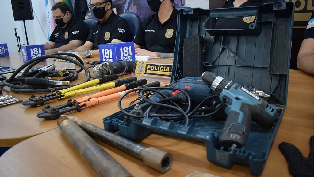 A Polícia Civil do Espírito Santo (PCES), por meio do Departamento Especializado de Investigações Criminais (Deic), em ação com a Polícia Rodoviária Federal (PRF), prendeu oito suspeitos de integrarem uma organização criminosa especializada em arrombar cofres de instituições financeiras. Os levantamentos apontam que se tratava da maior quadrilha especializada neste tipo de crime no Estado. Os detalhes foram divulgados em entrevista coletiva, na última sexta-feira (26), na Chefatura de Polícia Civil, em Vitória.