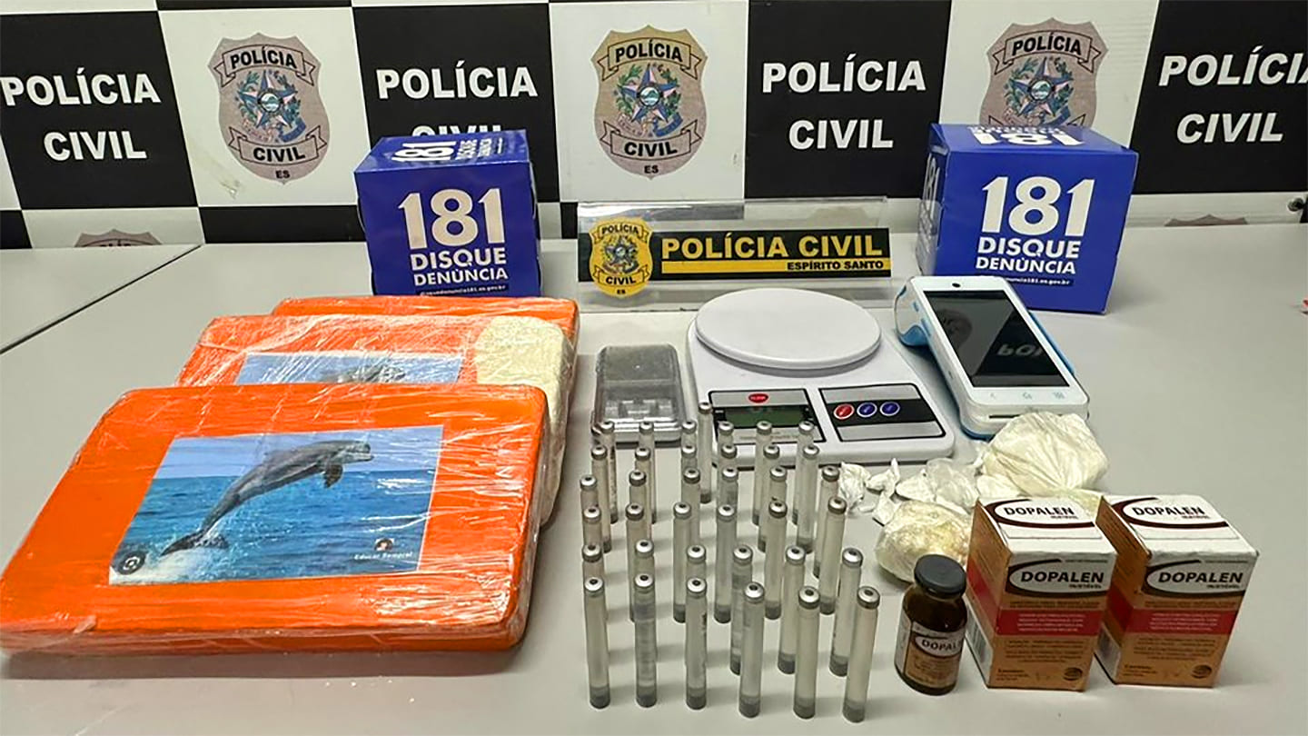 Foram encontradas porções de drogas armazenadas em um compartimento oculto do veículo e, posteriormente, foram apreendidos na residência três quilos de cocaína pura, 36 frascos de lidocaína, três frascos de anestésico, duas balanças de precisão e anotações do tráfico.