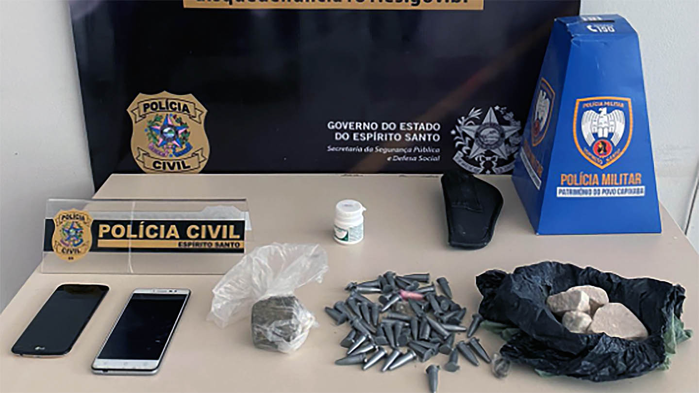 No local, foram encontrados 16 papelotes de cocaína, um pote de ácido bórico, material para embalos de entorpecente, além de 87 buchas de maconha, cinco pinos de cocaína. Eles foram encaminhados à Denarc, onde o homem foi autuado em flagrante pelos crimes de tráfico de drogas, associação para o tráfico e corrupção de menores, e foi encaminhado ao Centro de Triagem de Viana (CTV). Quanto ao adolescente, foi realizado boletim de ocorrência circunstanciado (BOC) por tráfico de drogas, associação para o tráfico e ele foi reintegrado à família.