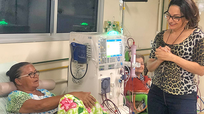 Em visita a Santa Casa de Cachoeiro, nesta quarta-feira (31), a Deputada Federal Norma Ayub percorreu o setor de hemodiálise, e em seguida se reuniu com o padre Evaldo Ferreira, Superintendente da entidade, os vereadores de Castelo Gerson Piassi e Everton Januncio, além do vereador de Muqui, Sérgio Luiz Anequim (Camarão).