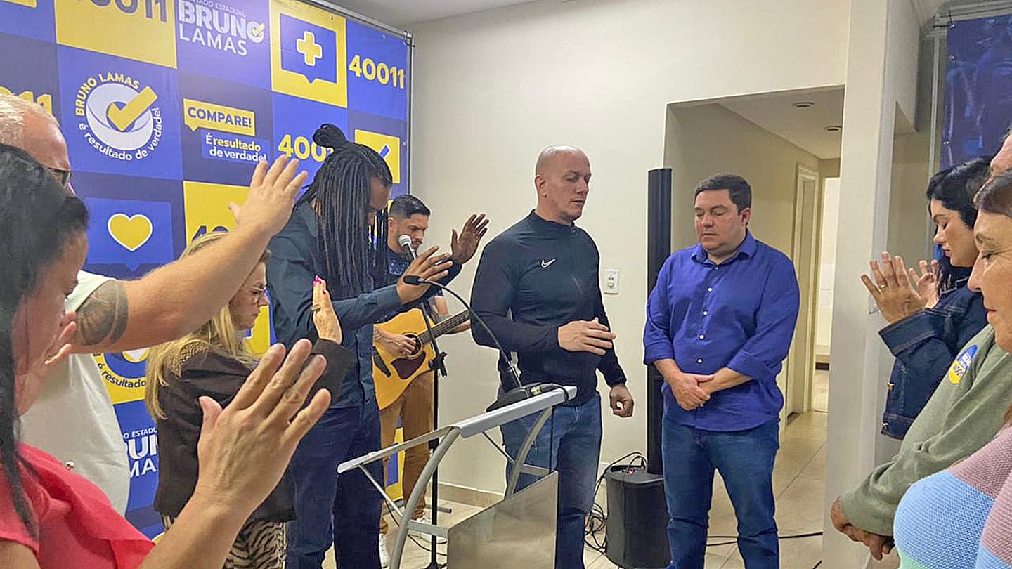 O deputado estadual Bruno Lamas (PSB), candidato à reeleição na Assembleia Legislativa, resolveu começar sua campanha ao terceiro mandato no Legislativo estadual de uma forma especial: antes de ir às ruas para pedir voto, ele inaugurou ontem (23) o comitê, localizado em Laranjeiras, na Serra, com a realização de um culto.