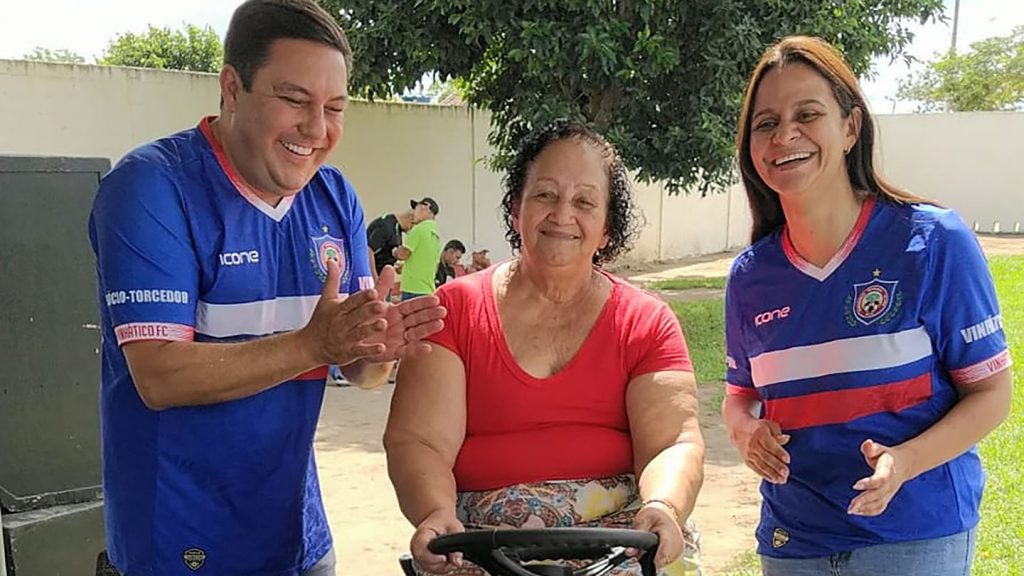 Uma festa foi preparada para receber Bruno, no estádio do Azulão do Norte, em Vinhático, com direito à faixa de agradecimento, fotos e discursos destacando a parceria. Receberam o parlamentar: a vice-prefeita Deuzélia Soares (PSB), a Zezé Soares, que fez questão de posar para foto oficial em cima do trator, além da secretária Marisa Salvador (Cultura, Desporto e Turismo).
