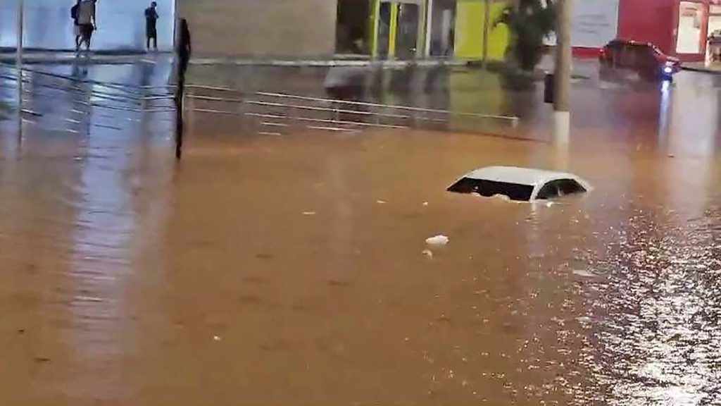 Carro submerso em rua da Grande Vitória: deputado Gandini quer conscientização sobre mudanças climáticas para reduzir impactos de eventos extremos.
