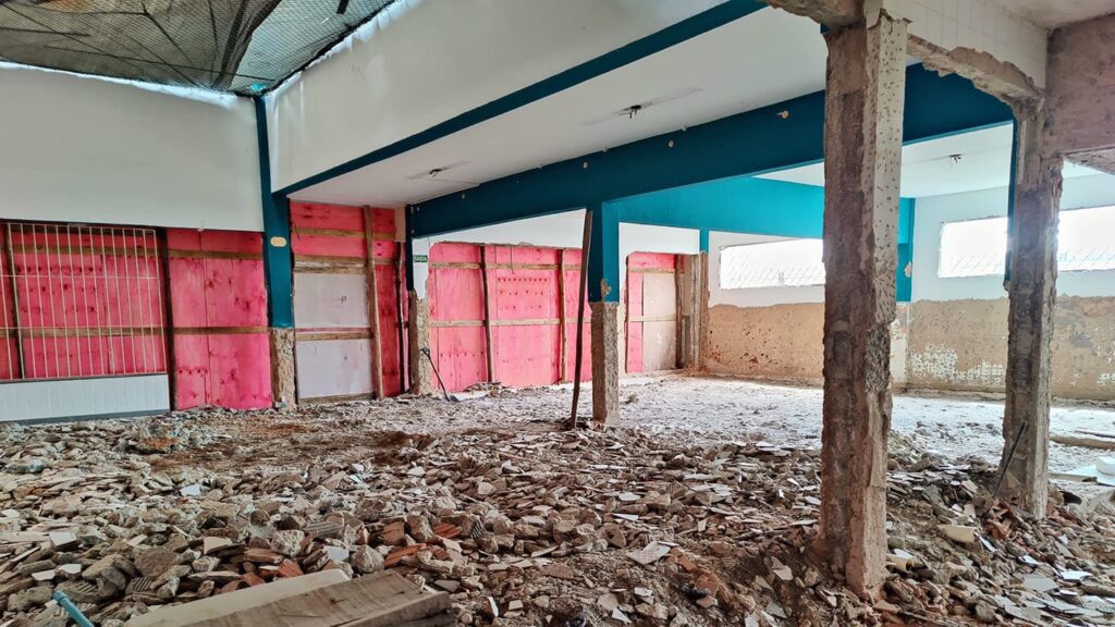 O encarregado da obra, Alexsandro da Vitória Carlos, informou que o cronograma está em dia e que 22 trabalhadores atuam na reforma, que inclui climatização, troca do telhado e reestruturação das redes elétrica e hidráulica.