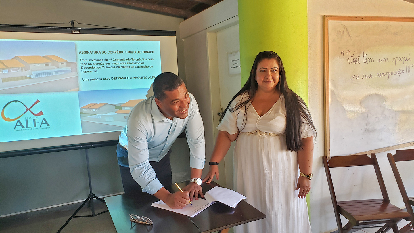 Já o diretor do Detran, Harlen da Silva, disse que: “depois de conversas com o pastor Luiz, pensamos na unidade do IASES de Cachoeiro que está abandonada e que poderia ser utilizada. Foi aí que começamos a levantar valores, projetos e chegamos a um entendimento que dava certo. Então o Detran assumiu o compromisso e está reformando o local. E pelo projeto Alfa ser uma instituição séria e que poderia cumprir o papel que o Detran espera, nós resolvemos assinar esse convênio, que irá atender não só os profissionais da área de motoristas, mas também outras pessoas, nessa tarefa tão importante, que é a recuperação de dependentes químicos”, finalizou.