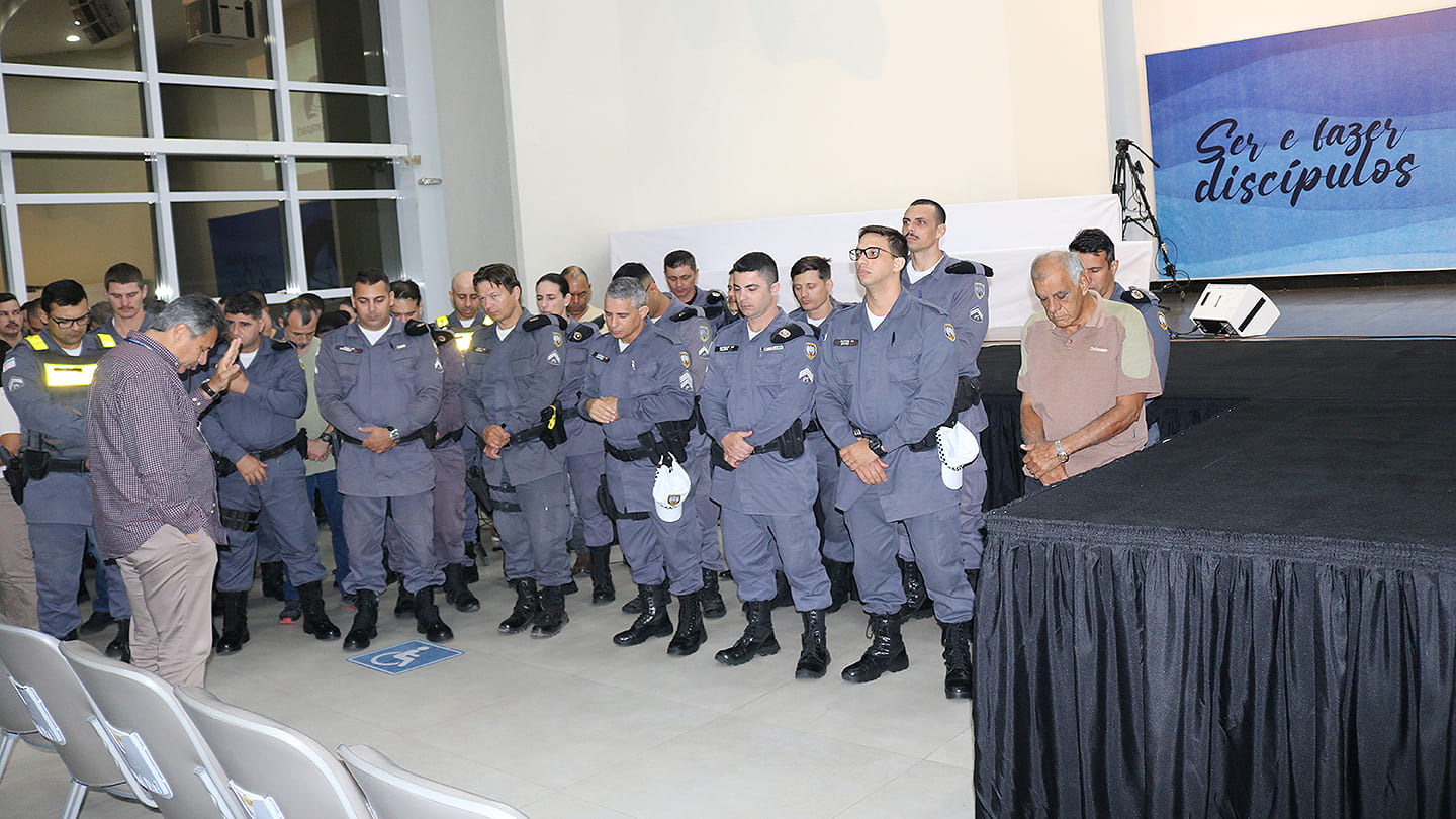 Estiveram presentes o comandante, o subcomandante da Unidade, além de diversos policiais, tanto da ativa quanto da reserva, familiares e admiradores da corporação. “Este é momento de nós agradecermos pela proteção e segurança que eles nos prestam. Nada é mais honroso que dar a vida a um irmão”, disse Raphael Abdalla, pastor titular da PIB.