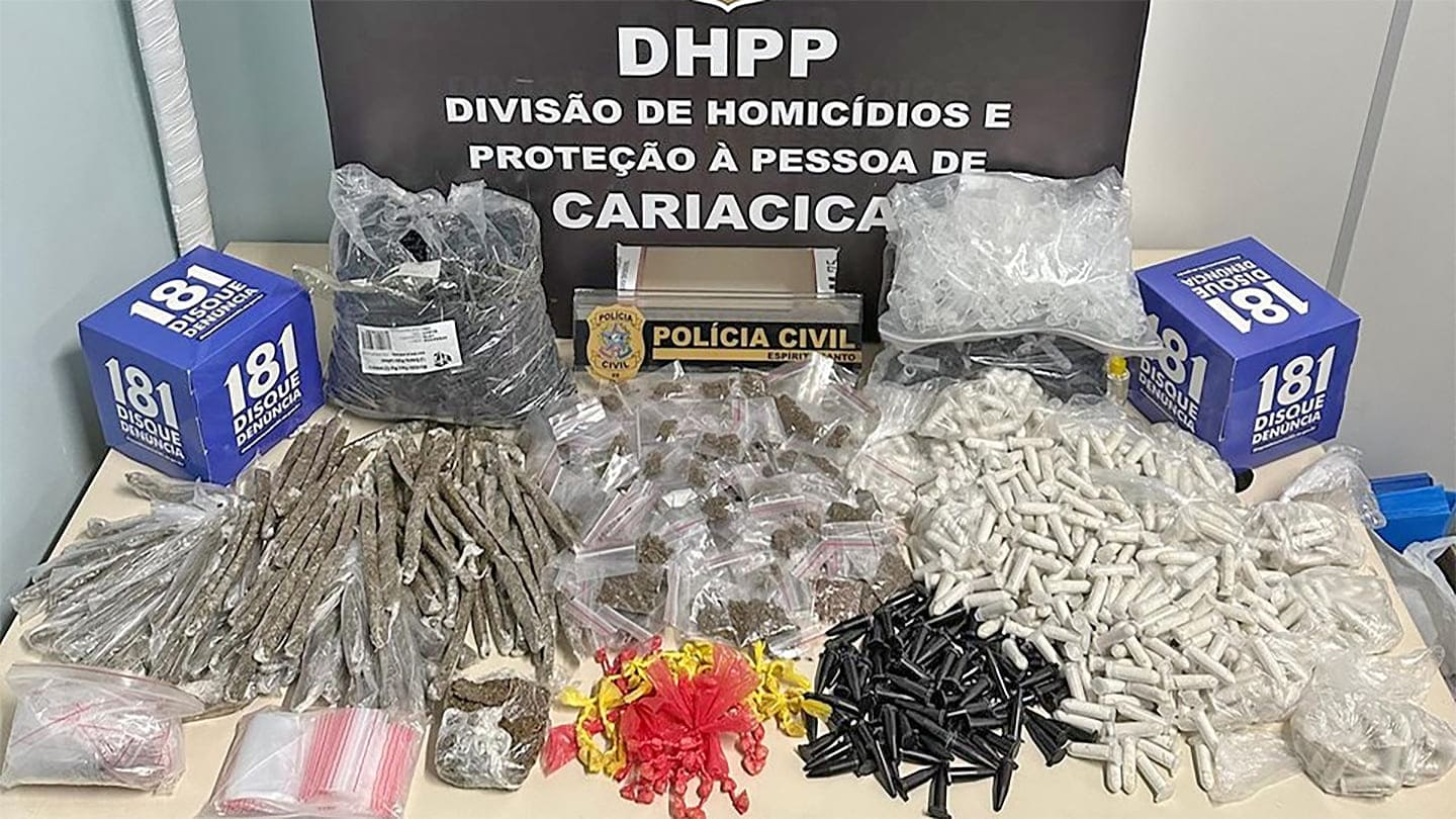 A Polícia Civil do Espírito Santo (PCES), por meio da Divisão de Homicídios e Proteção à Pessoa (DHPP) de Cariacica, apreendeu, durante cumprimento de um mandado de busca e apreensão, nessa quinta-feira (29), 924 pinos de cocaína, 171 buchas e 92 palitos de maconha, além de 110 pedras de crack em um imóvel, no bairro Santo Antônio, em Cariacica. Ninguém foi detido.