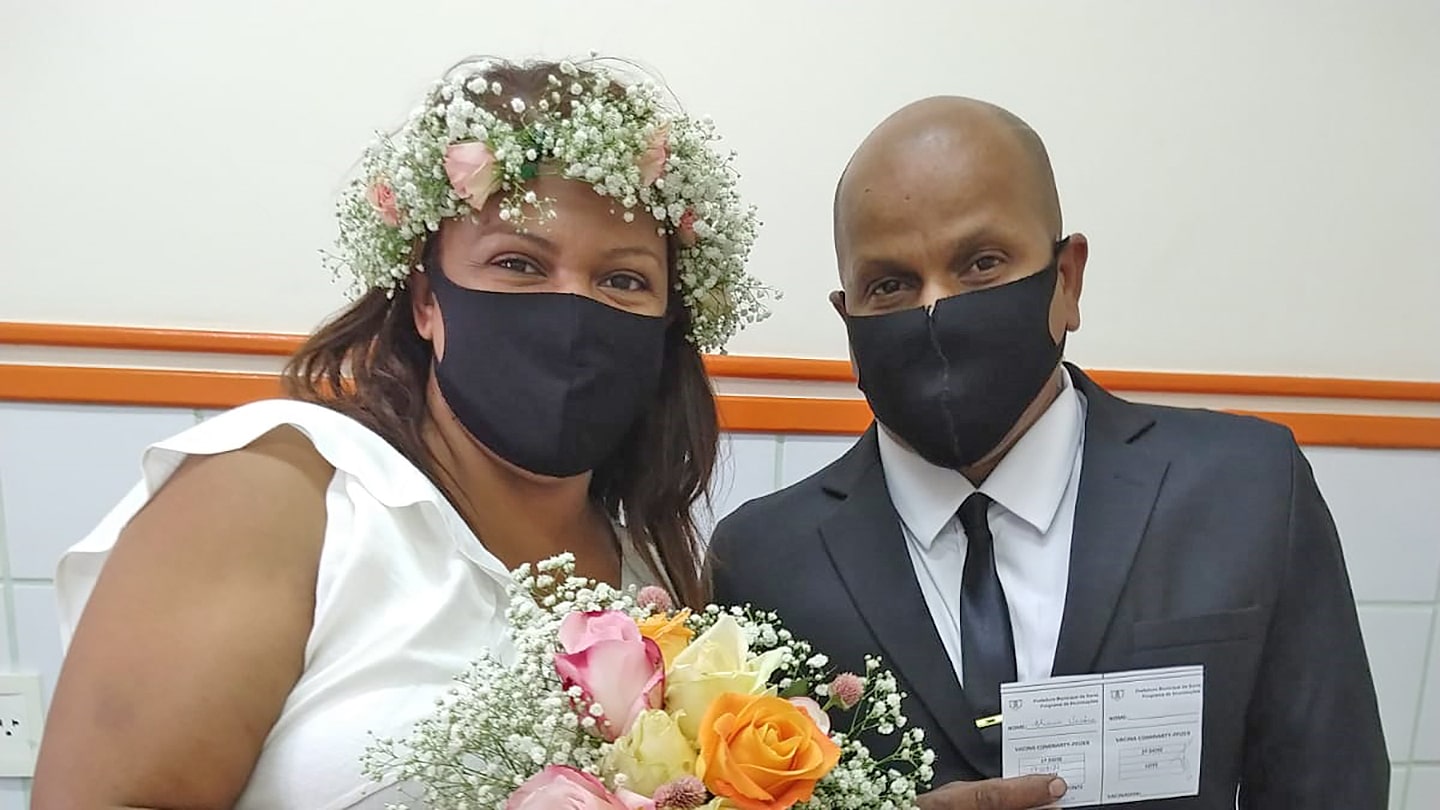 Serra/ES – Depois da dose de amor confirmada em um “sim, aceito”, a diarista Eliane Vieira, 39 anos, pegou seu agora marido, o mecânico Ronaldo Adriano dos Santos, 43, e partiu para a Unidade Regional de Saúde (URS) de Novo Horizonte para receber sua dose de saúde, de esperança. “Foi um pacote de felicidade. Que tenhamos muito amor e saúde!”, definiu, Eliane, a sensação de se casar e receber a primeira dose da vacina contra a Covid-19 no mesmo dia.