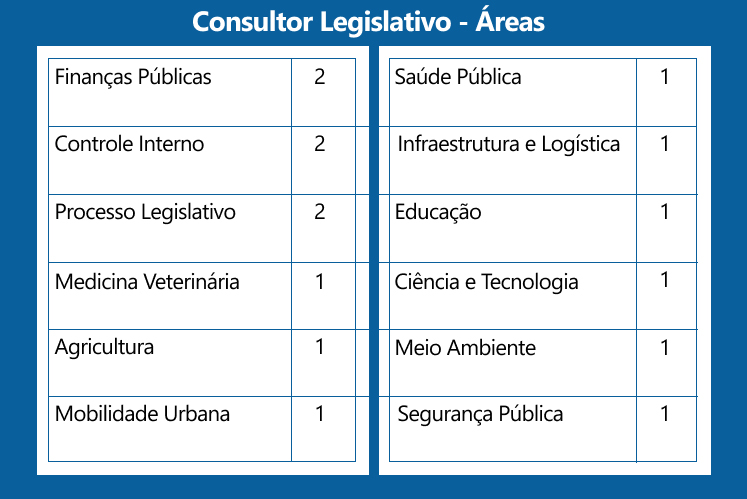 No caso do Consultor Legislativo é necessário nível superior, sendo admitida experiência de, no mínimo, três anos na área pretendida pelo candidato. Para o cargo de Analista as oportunidades são somente para nível superior. Já para Agente de Polícia Legislativa a exigência é de nível fundamental.