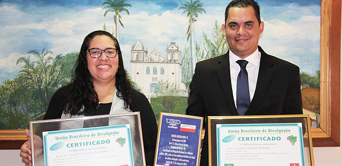 O prêmio foi direcionado para o prefeito Gilson Daniel, como um dos 100 melhores prefeitos do Brasil e, para a secretária de Educação, Luzian Belisário, também, como uma das 100 melhores secretárias de Educação do país.