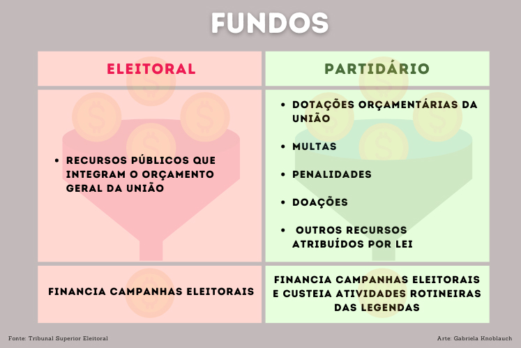 Tanto a constituição quanto a destinação de recursos dos fundos partidário e eleitoral são diferentes. É o que explica Mônica: