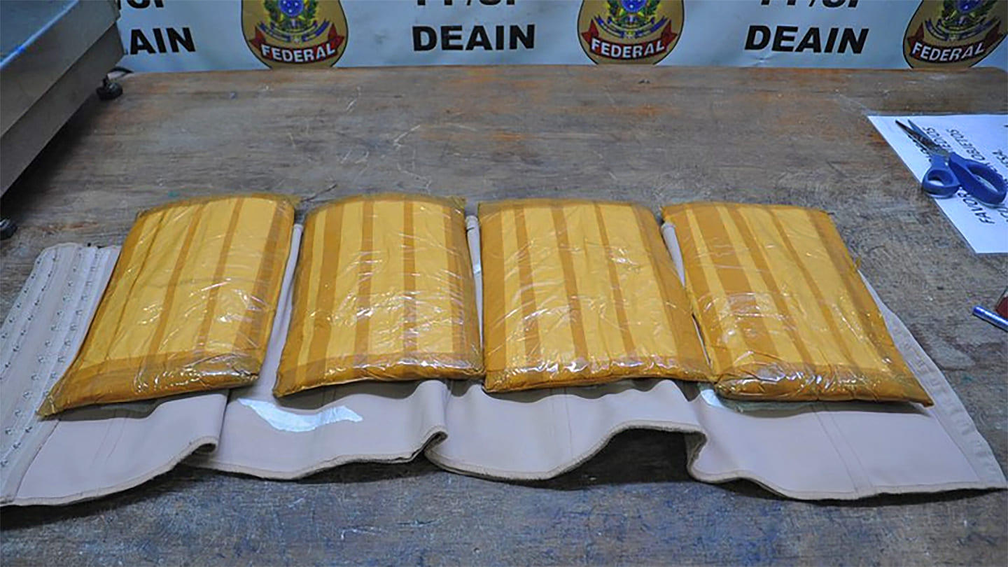 Em outra ação, um brasileiro de 36 anos, que disse já ter sido preso por tráfico de drogas em Santa Catarina, foi flagrado com mais de dois quilos de cocaína nas estruturas de sua mala de viagem. O suspeito havia feito check-in para voo com destino a Tailândia.