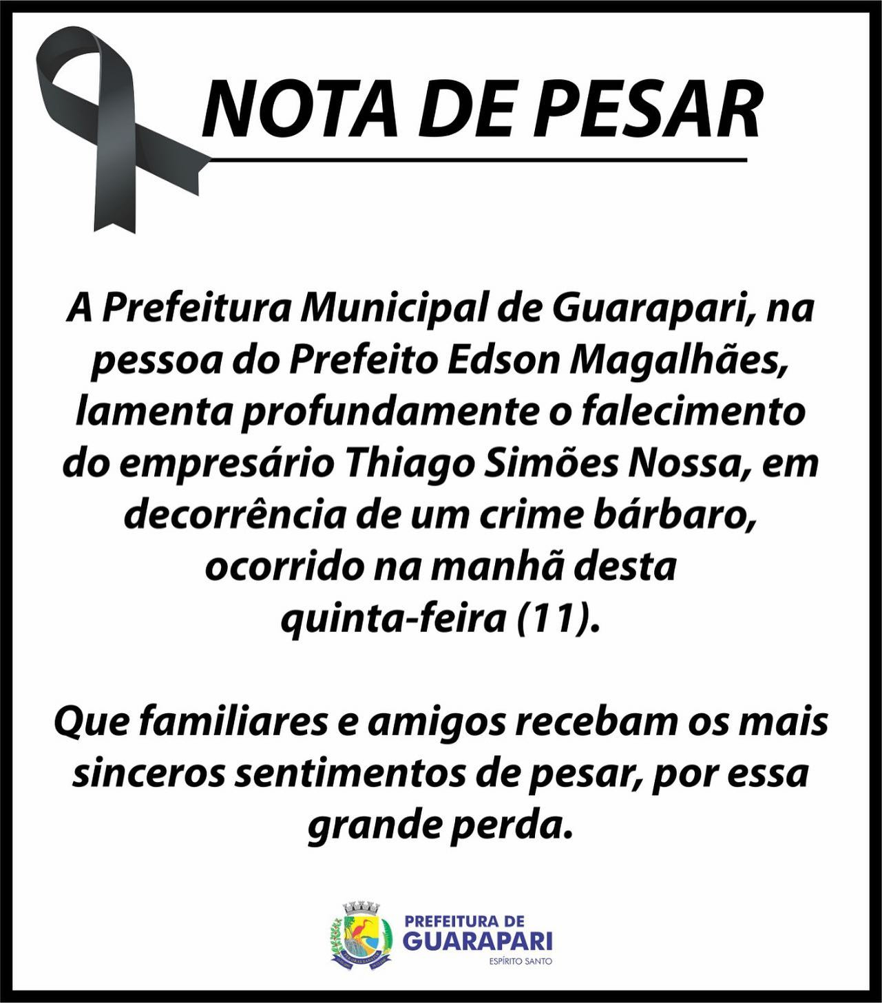 A prefeitura de Guarapari, em nota, lamenta a morte de Thiago.