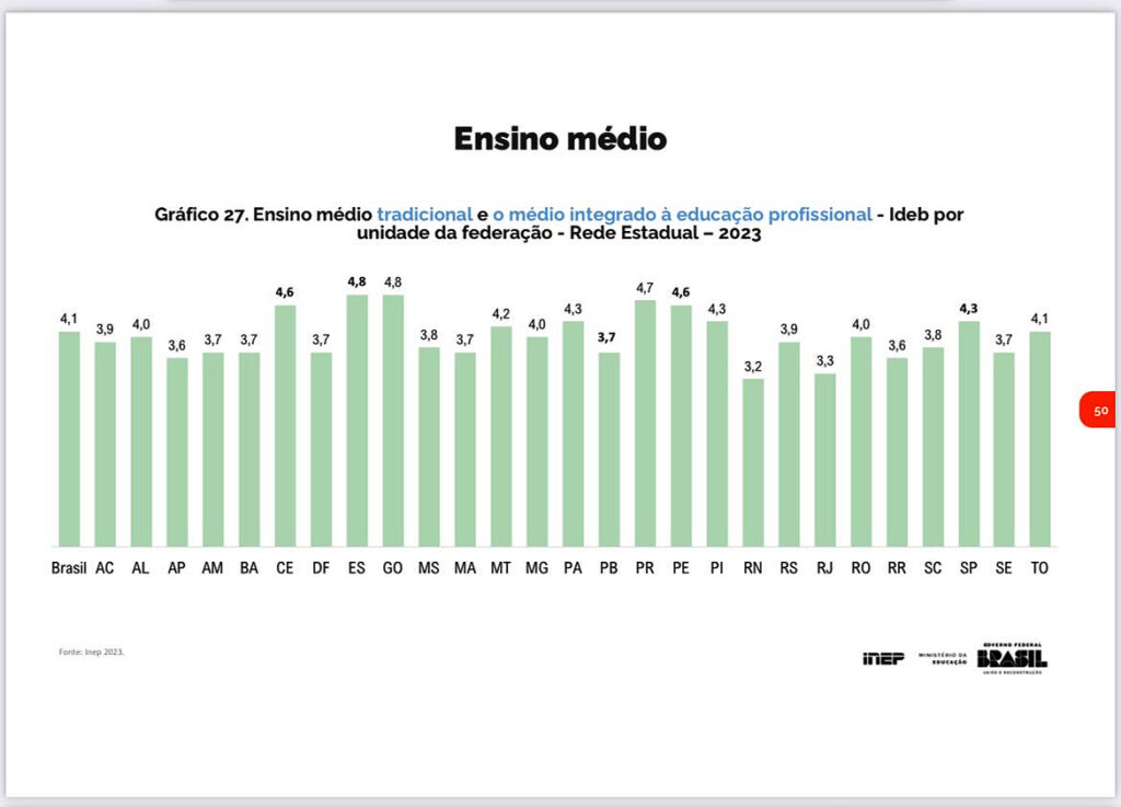 “Estamos felizes pelo esforço que estamos fazendo e conseguimos o melhor resultado da série histórica. Estar em primeiro lugar no Ensino Médio é um orgulho. O Espírito Santo é o único estado com nota superior a cinco em aprendizagem. Enfrentamos e superamos uma pandemia global e esse resultado mostra nossa capacidade de recuperação. Por isso temos que parabenizar a todos os profissionais que trabalham na educação”, comentou o governador Renato Casagrande.