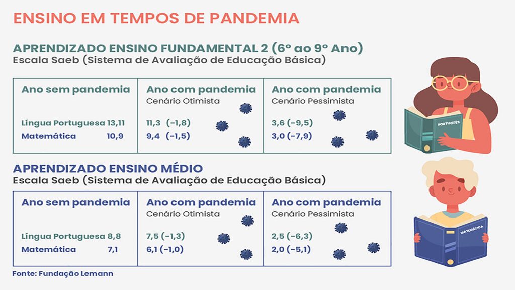 Um estudo encomendado pela Fundação Lemann e produzido pela Fundação Getulio Vargas (FGV) mostra o impacto da suspensão de aulas na pandemia. De acordo com os resultados da pesquisa, o aprendizado não realizado no País em 2020, durante o período de escolas fechadas, pode ser superior à evolução de proficiência dos estudantes observada nos últimos quatro anos, tanto em matemática quanto em língua portuguesa.