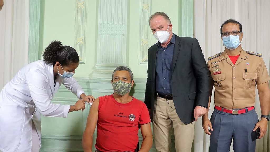 O sargento do Corpo de Bombeiros Militar, Jocimar Vieira da Rocha, 42 anos, estava muito feliz por receber a vacina. “É um passo importante para o combate ao Coronavírus. Os profissionais da segurança estão desempenhando uma atividade que não pode parar, juntamente com os profissionais de saúde. É um passo fundamental para garantir a manutenção dos serviços e também para proteção desses profissionais”, declarou.