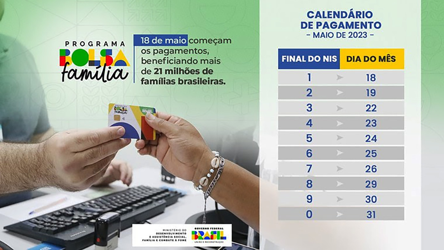 Os pagamentos têm início nesta quinta-feira (18/5) para beneficiários com o final 1 no Número de Identificação Social (NIS). O calendário de repasses segue até dia 31. Têm direito ao Bolsa Família as famílias com renda per capita de, no máximo, R$ 218 por mês.