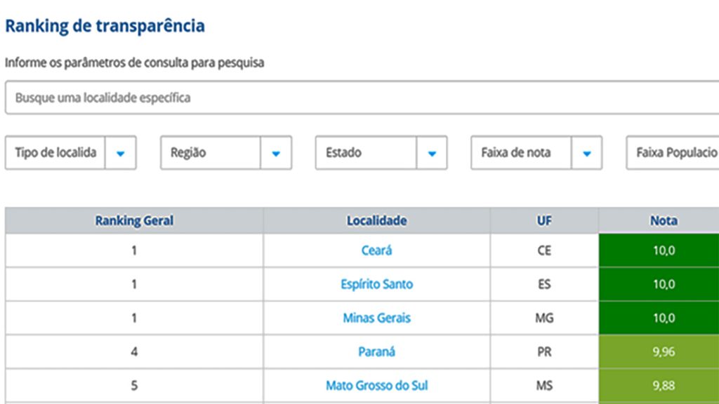 A conquista da nota máxima significa que o Estado atingiu todos os requisitos avaliados, cumprindo em totalidade as exigências em transparência.