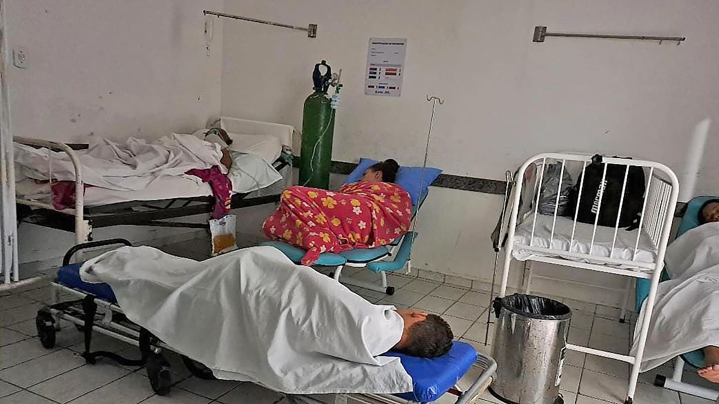 As queixas não param por aí. Um vídeo, que circula nas redes sociais e em grupos de WhatsApp, mostra homens e mulheres espalhados em macas em meio a uma pequena enfermaria superlotada, sem espaço mínimo para que os pacientes possam se locomover adequadamente.