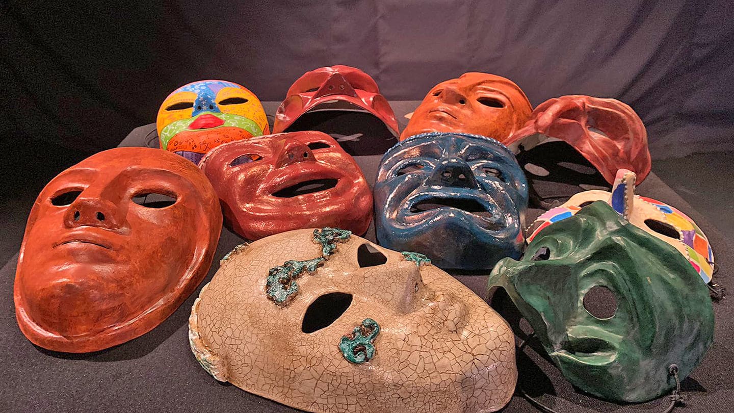 Diversas máscaras confeccionadas na antiga técnica italiana da cartapesta foram escolhidas para fazer parte da exposição que reúne máscaras neutras e expressivas.