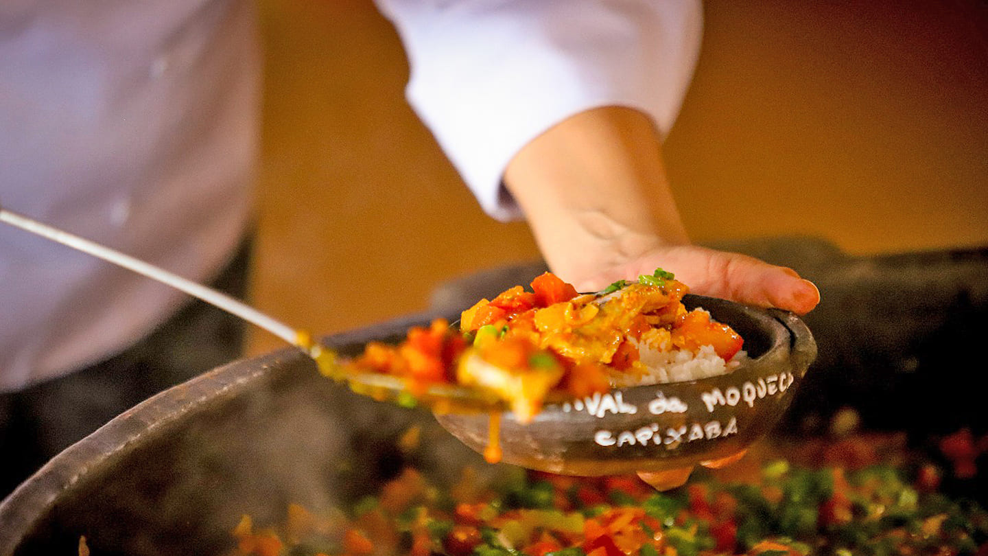 No festival, o prato é preparado como manda a tradição, na panela de barro artesanal das Paneleiras de Goiabeiras, preservando o sabor e a história de um dos maiores ícones da culinária brasileira.