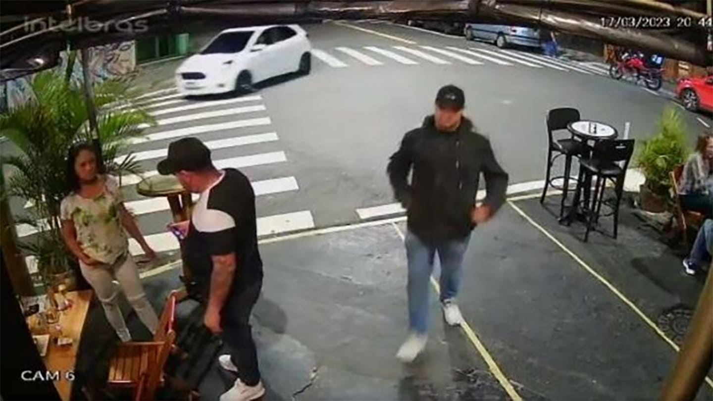 No vídeo aparece Rafael entrando no comércio de boné e casaco e dispara contra os dois, gerando uma grande confusão no local.
