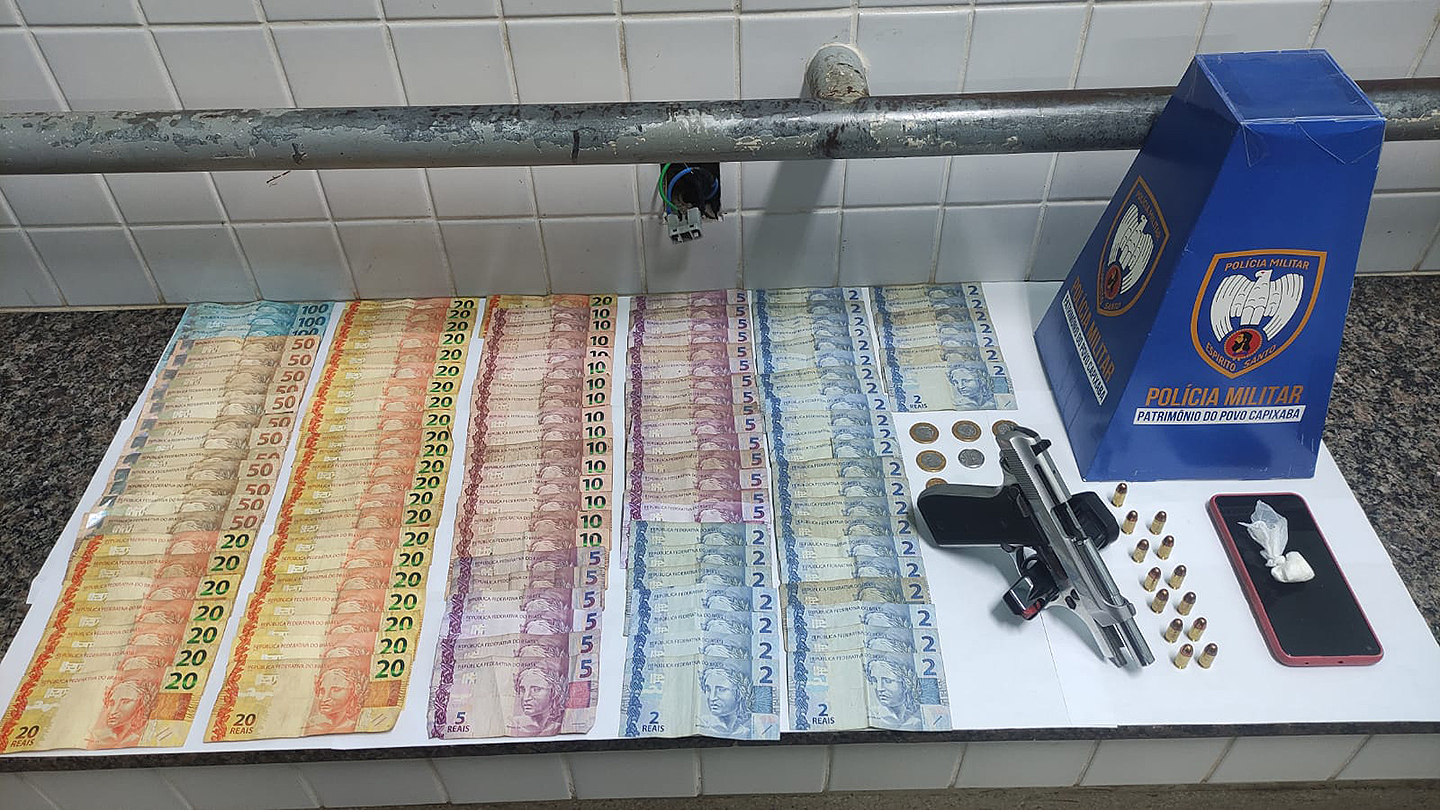 Durante a noite, por volta das 22h, uma pistola foi apreendida em posse de um homem no bairro Nova Guarapari. Foi apreendido ainda uma pequena quantidade de cocaína, 13 munições de calibre .380, um carregador da pistola, uma bolsa contendo vários documentos pessoaos, um celular, um capacete, o valor de R$ 1.832,10 e uma motocicleta. O suspeito foi detido.