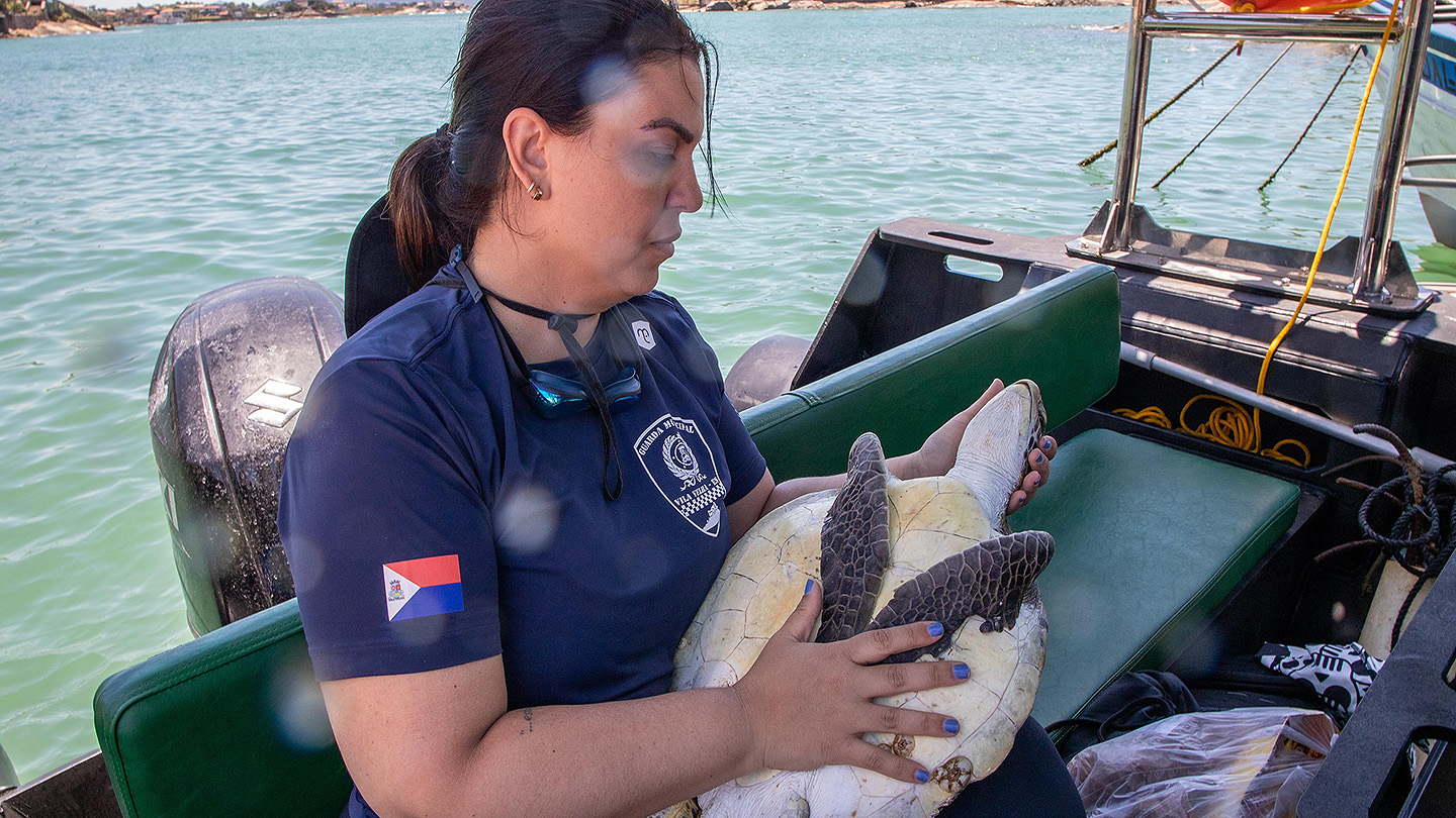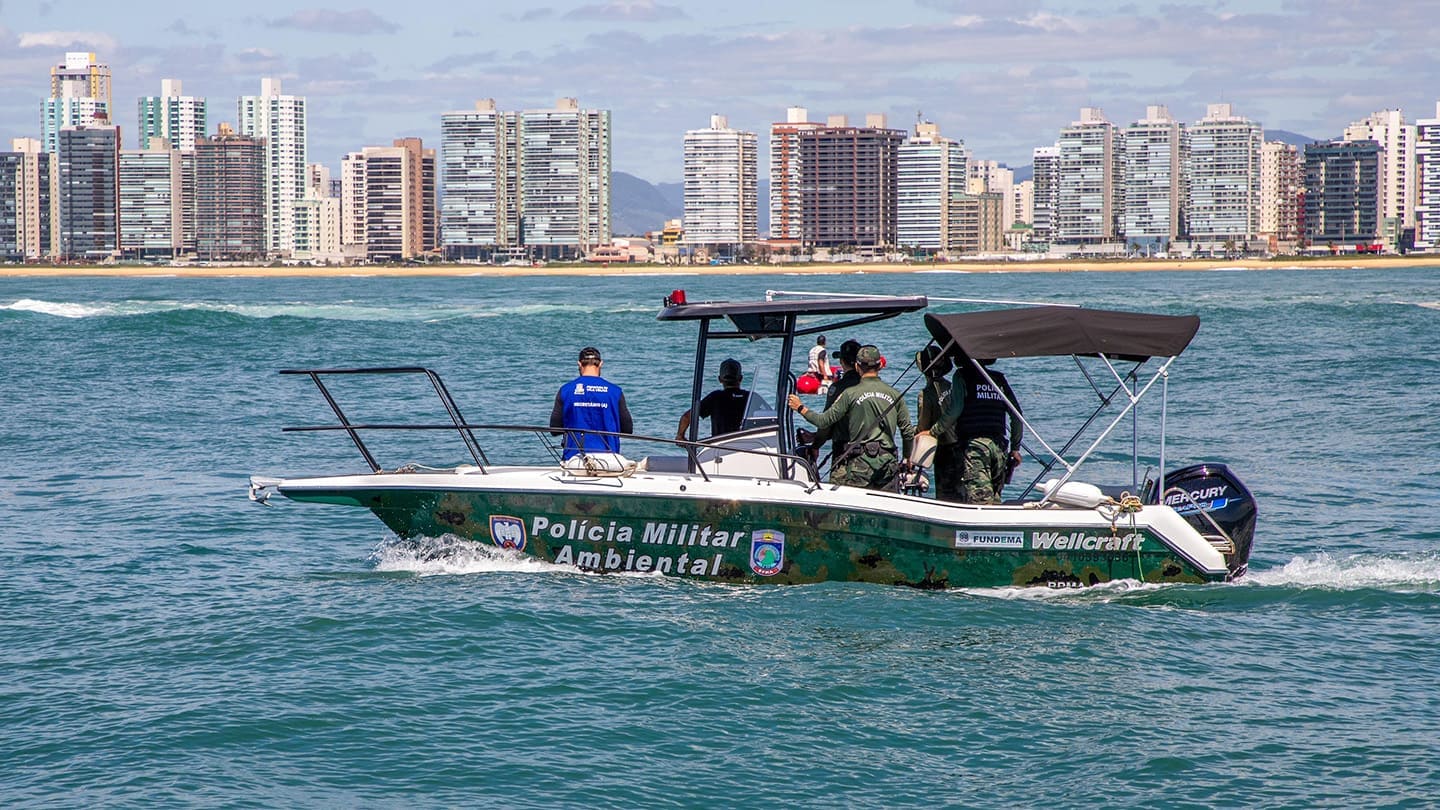 O major Fiorim, subcomandante do Batalhão de Polícia Militar Ambiental, destacou que a operação visa liberar o ambiente marinho para que os cetáceos e tartarugas possam continuar a exibir seu espetáculo na orla.