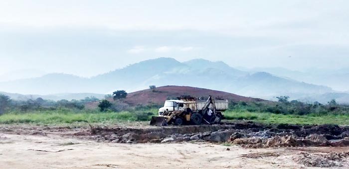 A Secretaria Municipal de Meio Ambiente realiza, constantemente, atividades de fiscalização no município. Neste último dia 27 o secretário da pasta, Tiago Leal, e o companheiro de trabalho, Kaio Perim Bizoni, avistaram, na localidade de Pedrinhos, um caminhão com a carroceria carregada de argila branca.