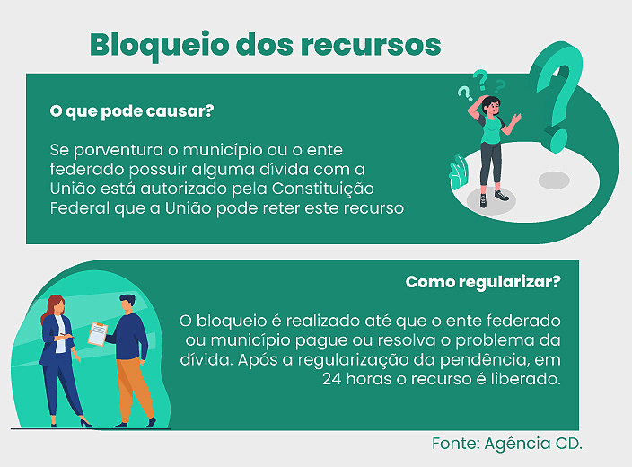 Sergipe está no topo do ranking, com registro de 15 municípios bloqueados. O Rio Grande do Sul também tem um número significativo, com oito municípios com o recurso retido, seguido pelo Maranhão, com sete. O bloqueio é realizado até que o município pague ou resolva o problema da dívida. Após a regularização da pendência, em 24 horas o recurso é liberado.