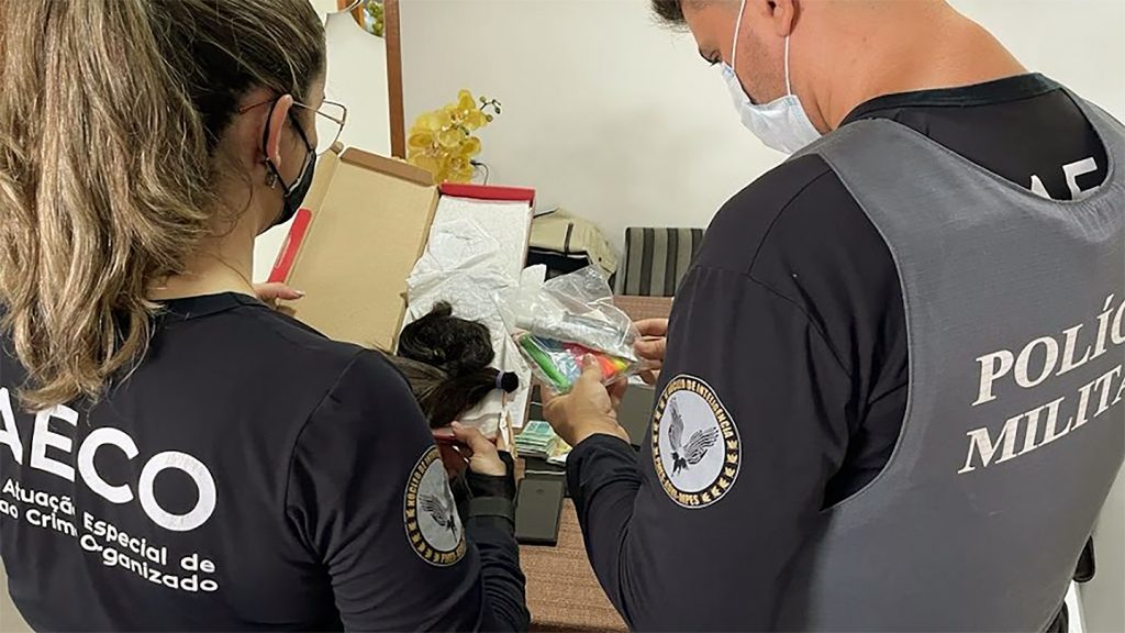 Participam da operação promotores de Justiça do Gaeco-Sul e policiais militares do Núcleo de Inteligência da Assessoria Militar do MPES e do 9º BPM.