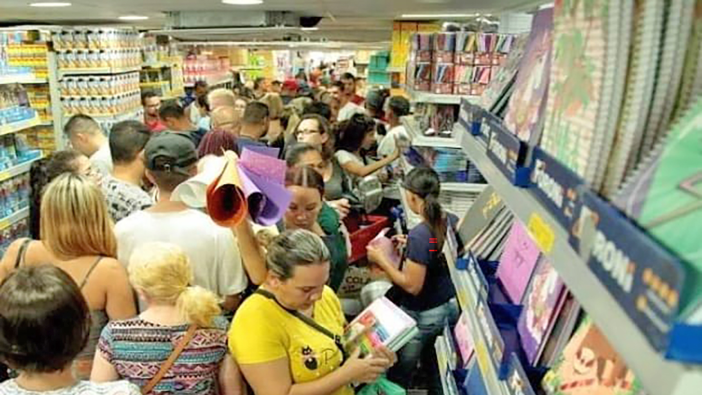 Pais compram material escolar em papelaria lotada: lei proíbe indicação de estabelecimentos.