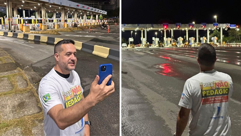 Três dias depois, Gandini participou do protesto “Diga Não ao Pedágio”, realizado na praça do pedágio, em Guarapari, onde fez panfletagem e conversou com os motoristas que passavam pelo local.