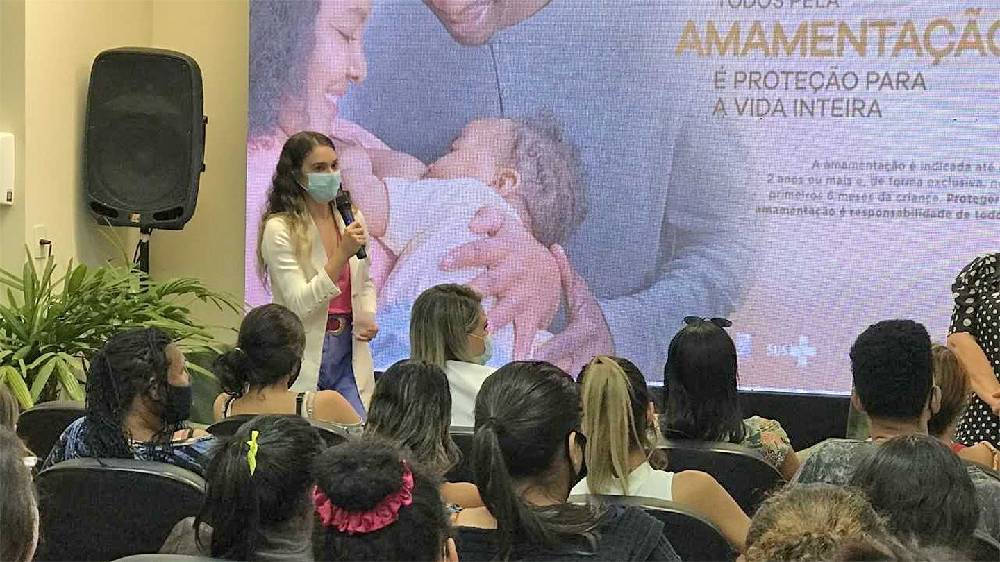 Durante a palestra ministrada pela médica Anna Terra Paganini Lopes foram abordados temas relacionados ao aleitamento materno como a posição ideal, mitos e verdades sobre o tema, além das vantagens e benefícios, tanto para as mães como para os bebês, em consequência de uma amamentação adequada.