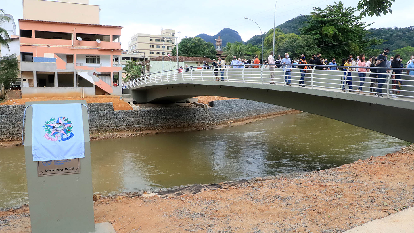 O governador do Estado, Renato Casagrande, esteve, na manhã desta quinta-feira (13), no município de Alfredo Chaves, na macrorregião sul, para a entrega das obras de reconstrução da infraestrutura local, atingida pelas fortes chuvas do início de 2020. Entre as obras inauguradas está a Ponte Sagrada Família, a principal da cidade. Casagrande visitou obras concluídas de outras pontes e contenção de encostas, além de dar Ordem de Serviço para a construção de um Centro Municipal de Educação Infantil (CMEI).