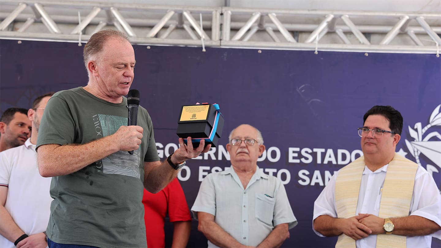 O governador do Estado, Renato Casagrande, inaugurou neste sábado (07), as obras de reurbanização da Praça São Pedro, no centro histórico de Anchieta, e da construção da sede própria da Escola Municipal Irmã Terezinha Godoy de Almeida. O investimento estadual chega a quase R$ 15 milhões. Durante a agenda, Casagrande autorizou o repasse de recursos para construção do Centro Especializado em Reabilitação (CER).