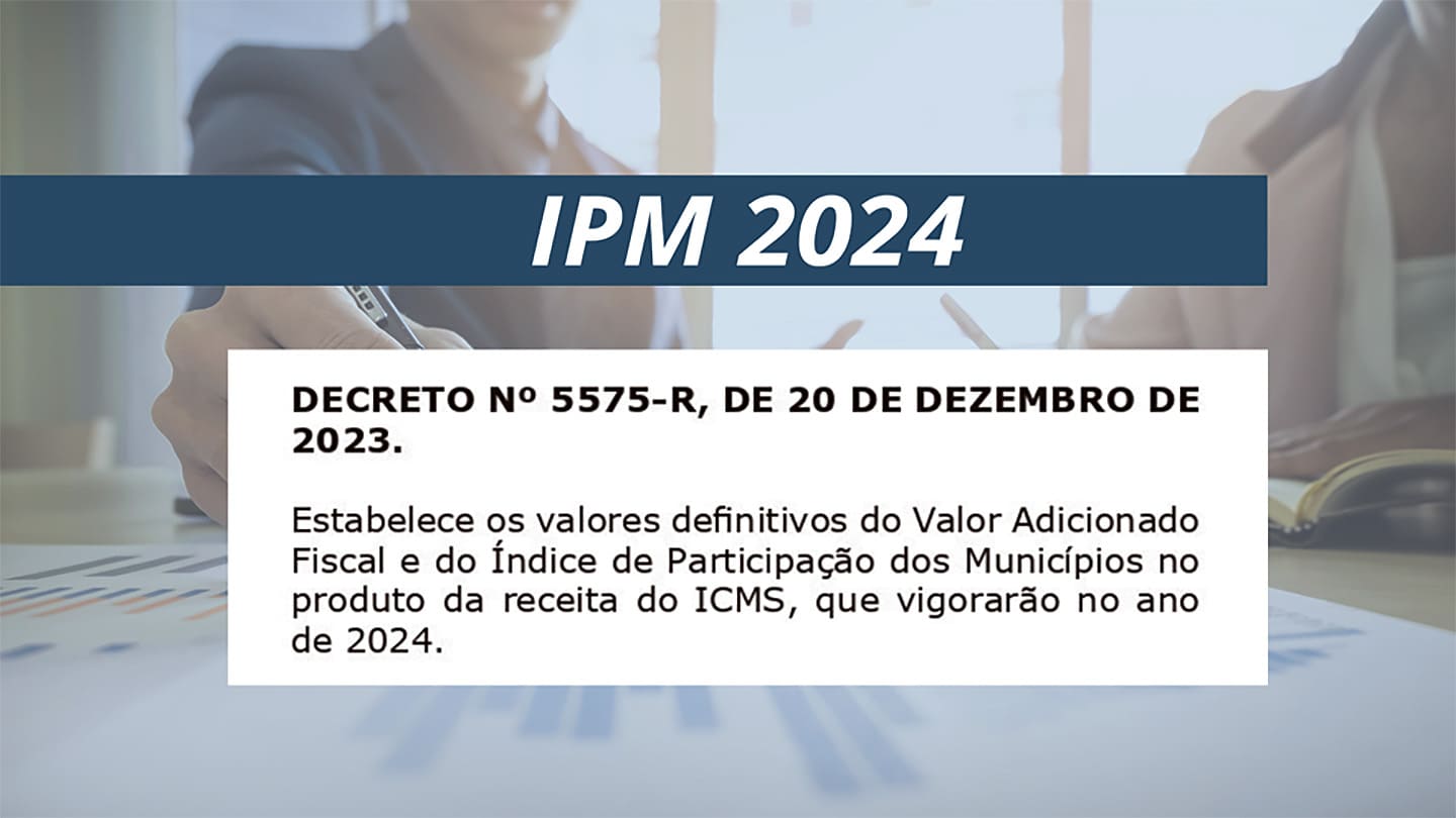 O Governo do Espírito Santo, por meio da Secretaria da Fazenda (Sefaz), definiu o Índice de Participação dos Municípios (IPM) para o exercício de 2024. O Decreto nº 5.575-R foi publicado nesta quinta-feira (21), no Diário Oficial do Estado. É com base no IPM que as administrações municipais recebem a parte que lhes cabe, referente ao repasse pelo Estado do Imposto Sobre a Circulação de Mercadorias Serviços (ICMS).