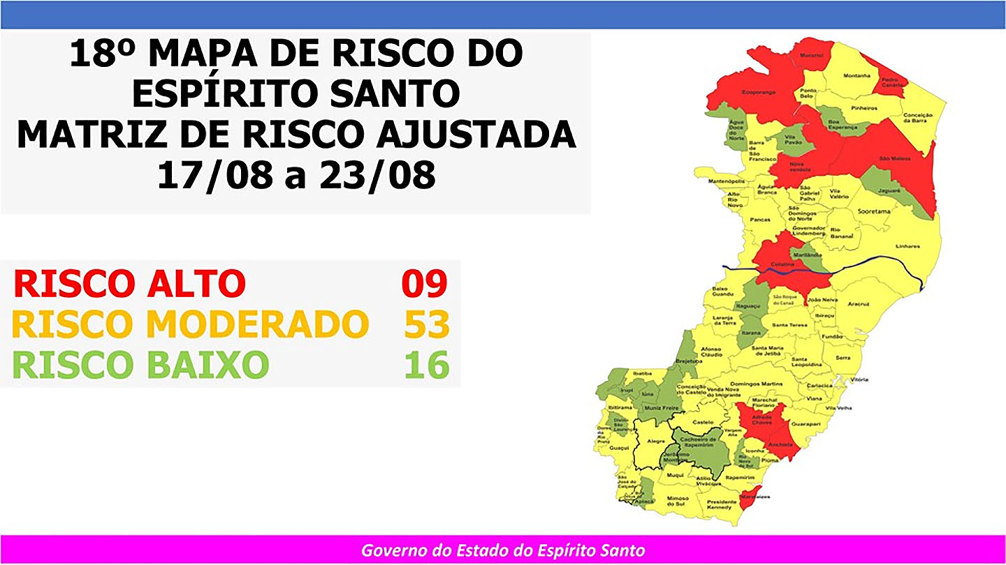 Governo do Espírito Santo divulga 18º Mapa de Risco Covid-19