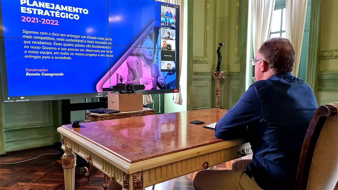 O Seminário de Planejamento Estratégico do Governo do Espírito Santo foi aberto nesta segunda-feira (19), com a participação do governador do Estado, Renato Casagrande; da vice-governadora Jacqueline Moraes; secretários, subsecretários e dirigentes de órgãos do Estado. Durante quatro dias a equipe do Governo participará de reuniões para validação de indicadores, metas e dos projetos da carteira estratégica da Administração Estadual para o período 2021-2022.