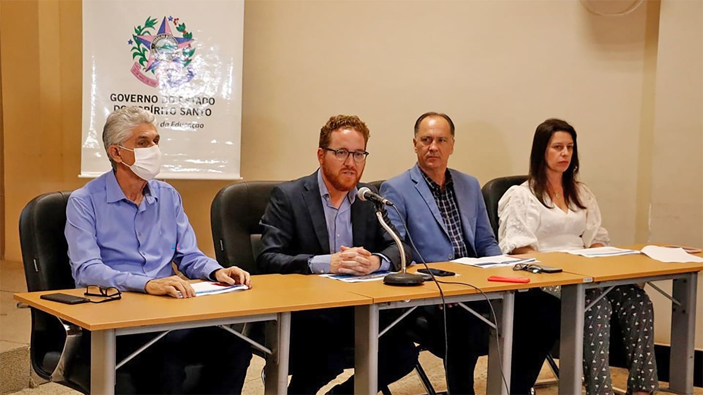 Durante coletiva de imprensa, realizada na tarde desta quarta-feira (30), na Secretaria da Educação (Sedu), em Vitória, membros da Sala de Situação instituída pelo Governo do Estado para o enfrentamento aos atos de violência ocorridos em escolas no município de Aracruz apresentaram o Plano de Ação integrado entre Governo do Estado e Prefeitura para lidar com o fato nos próximos dias e semanas.
