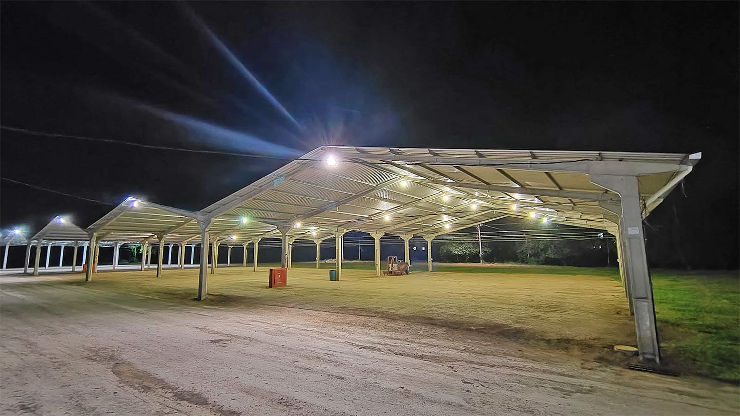 O terreno do Parque de Exposições conta com fácil acesso para veículos, além de topografia favorável, o que permitiu a construção dos cinco galpões, que têm dimensões de 15 metros por 10 metros.
