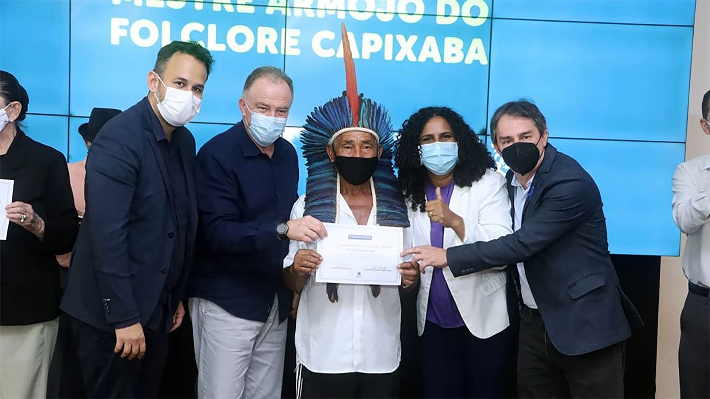 A premiação “Mestre Armojo do Folclore Capixaba” é resultante do Edital 013/2020 – Mestres e Grupos da Cultura Popular e tem como objetivo reverenciar a atuação de mestres e grupos, que auxiliam no fortalecimento e divulgação dos saberes e fazeres tradicionais. Na ocasião, a Secult concedeu aos 20 mestres o título e o certificado de “Mestres das Culturas Populares do Estado do Espírito Santo” e/ou de “Reconhecimento pela Manutenção das Culturas Populares e Tradicionais do Estado do Espírito Santo”.