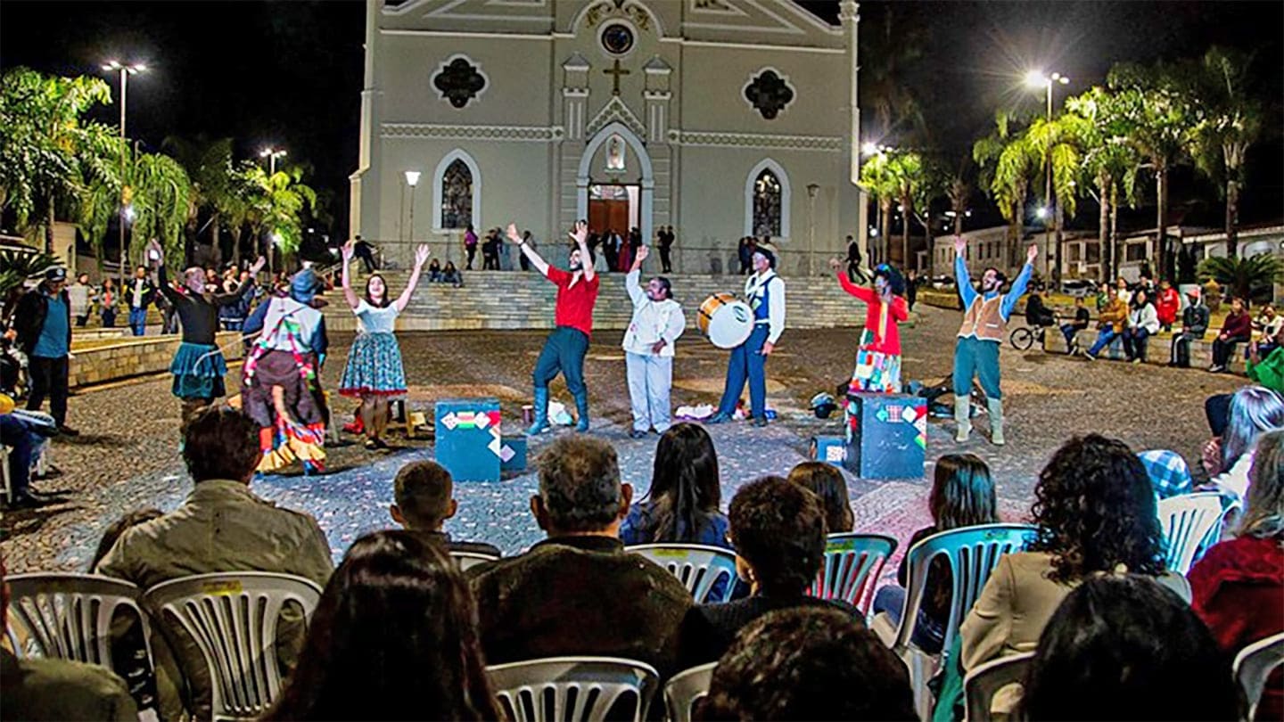 Sediado em Guaçuí, no sul do Espírito Santo, o grupo teatral Gota, Pó e Poeira está passando uma temporada em Minas Gerais, onde participa da sétima edição do Festival Nacional de Teatro de Passos e Região. A trupe abriu o evento, no último sábado (15), com apresentação do espetáculo “Bumba Meu Boi”, na Praça Matriz da cidade de Alpinópolis.