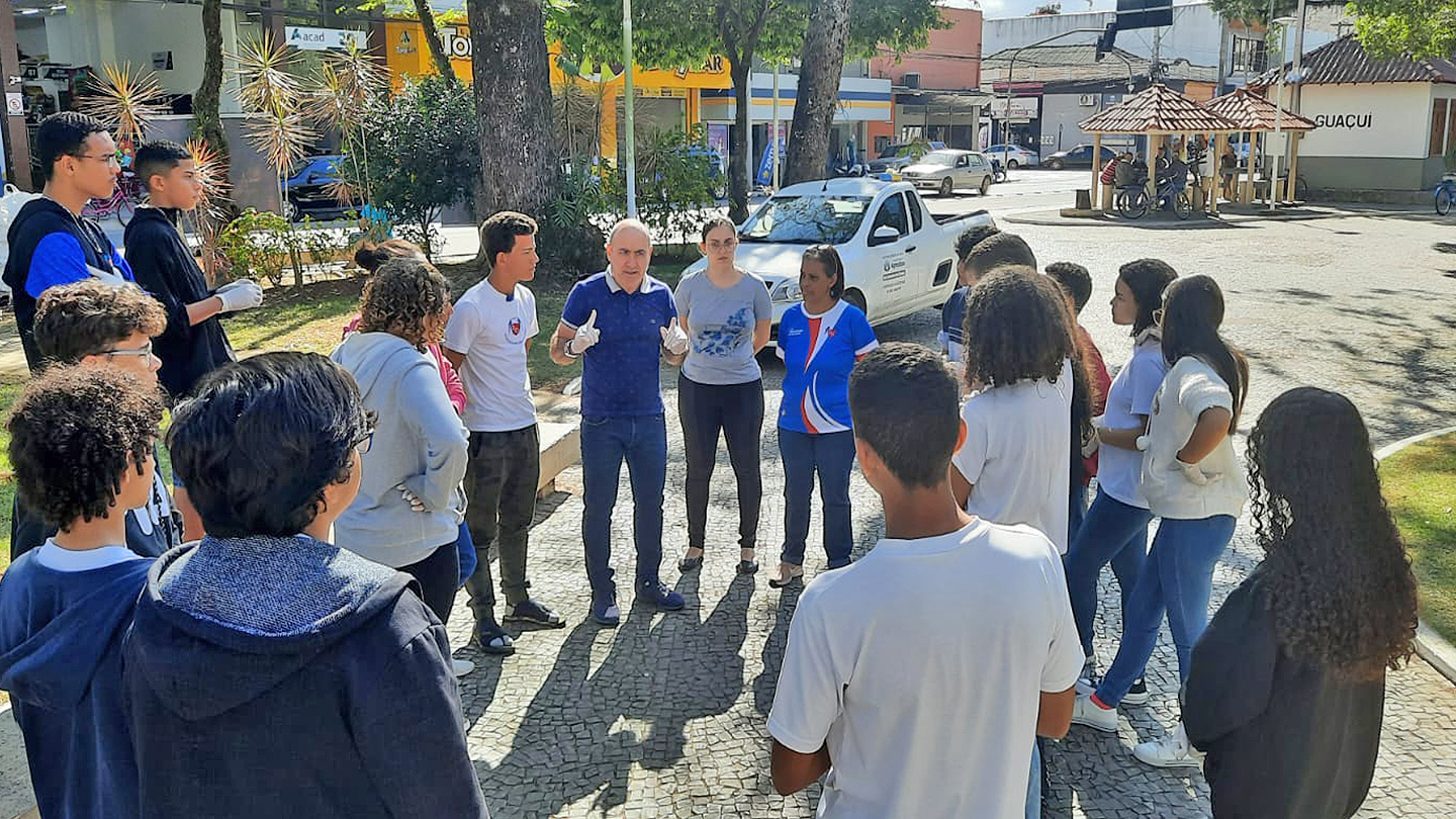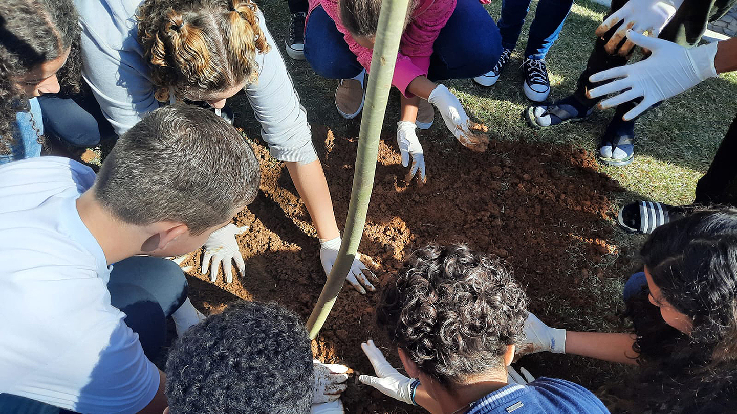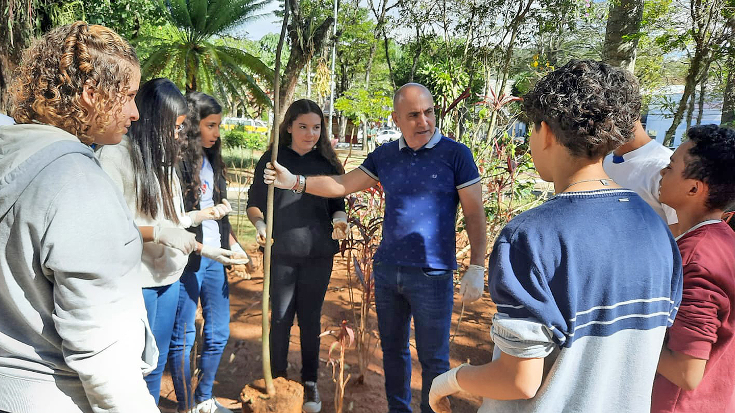 Na manhã desta terça-feira (12) alunos do 8º ano da Escola Municipal Deocleciano de Oliveira plantaram na Praça João Acacinho, quatro mudas de jequitibá-rosa, árvore nativa do Brasil e símbolo do Estado do Espírito Santo.