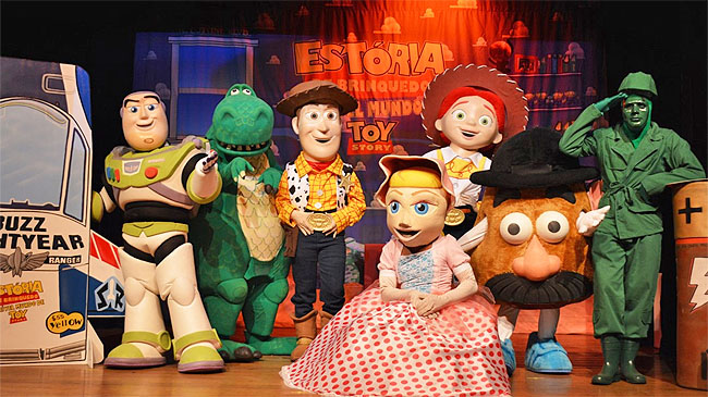 No musical, a criançada e adultos vão ver de pertinho o patrulheiro espacial Buzz Lightear, o dinossauro Rex, o Sr Cabeça de Batata, a camponesa Betty, o xerife Woody, a vaqueira Jessye, além dos soldadinhos de plásticos mais fiéis do planeta e o Mickey Mouse.